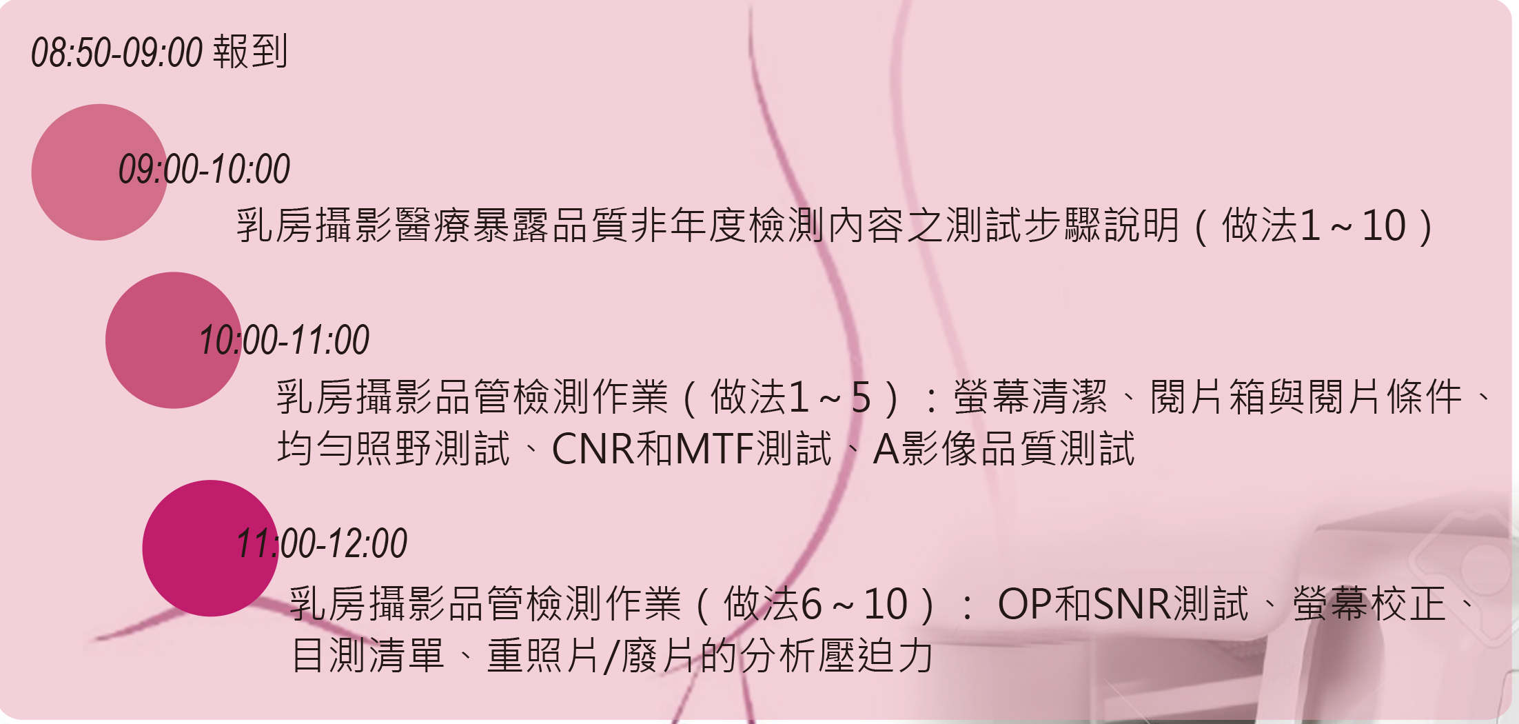 課程積分:醫事放射師3積分(專業3積分)、輻射防護人員繼續教育3小時
