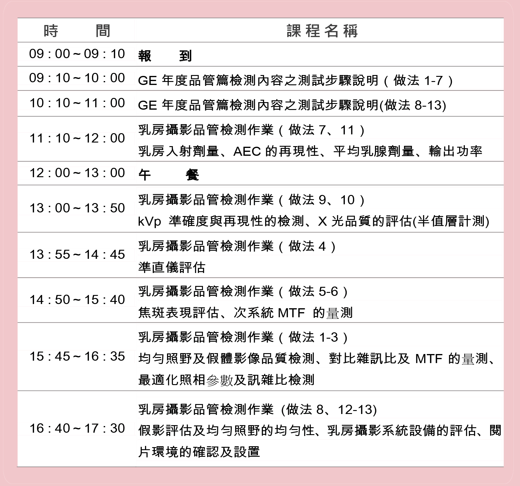 課程積分:醫事放射師8積分(專業課程)、輻射防護人員繼續教育8小時