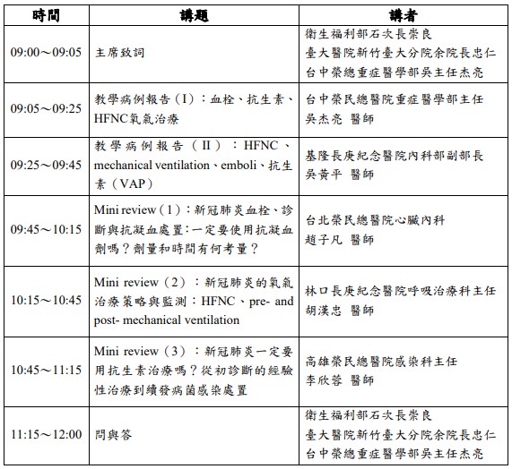 課程名稱:COVID-19 Grand Rounds:新冠病毒重症個案臨床處置線上教學病例研討會(2)