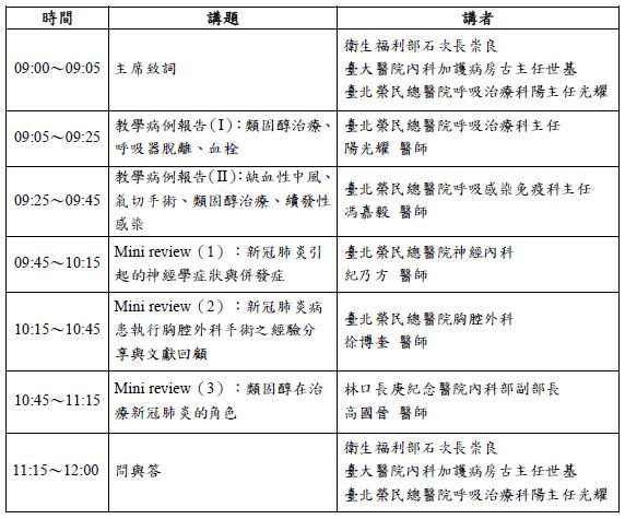 課程名稱:COVID-19 Grand Rounds:新冠病毒重症個案臨床處置線上教學病例研討會(3)