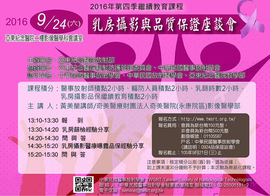 課程積分:醫事放射師積點2小時、輻防人員積點2小時、乳篩時數2小時、