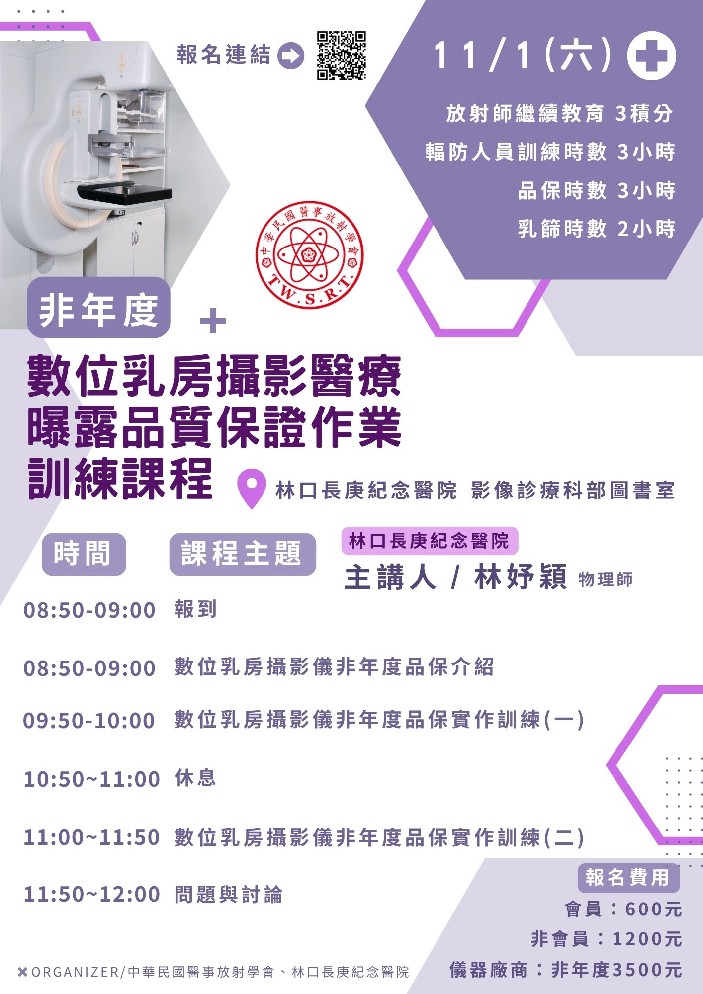 課程名稱:114年數位式乳房攝影醫療曝露品質保證實作訓練課程