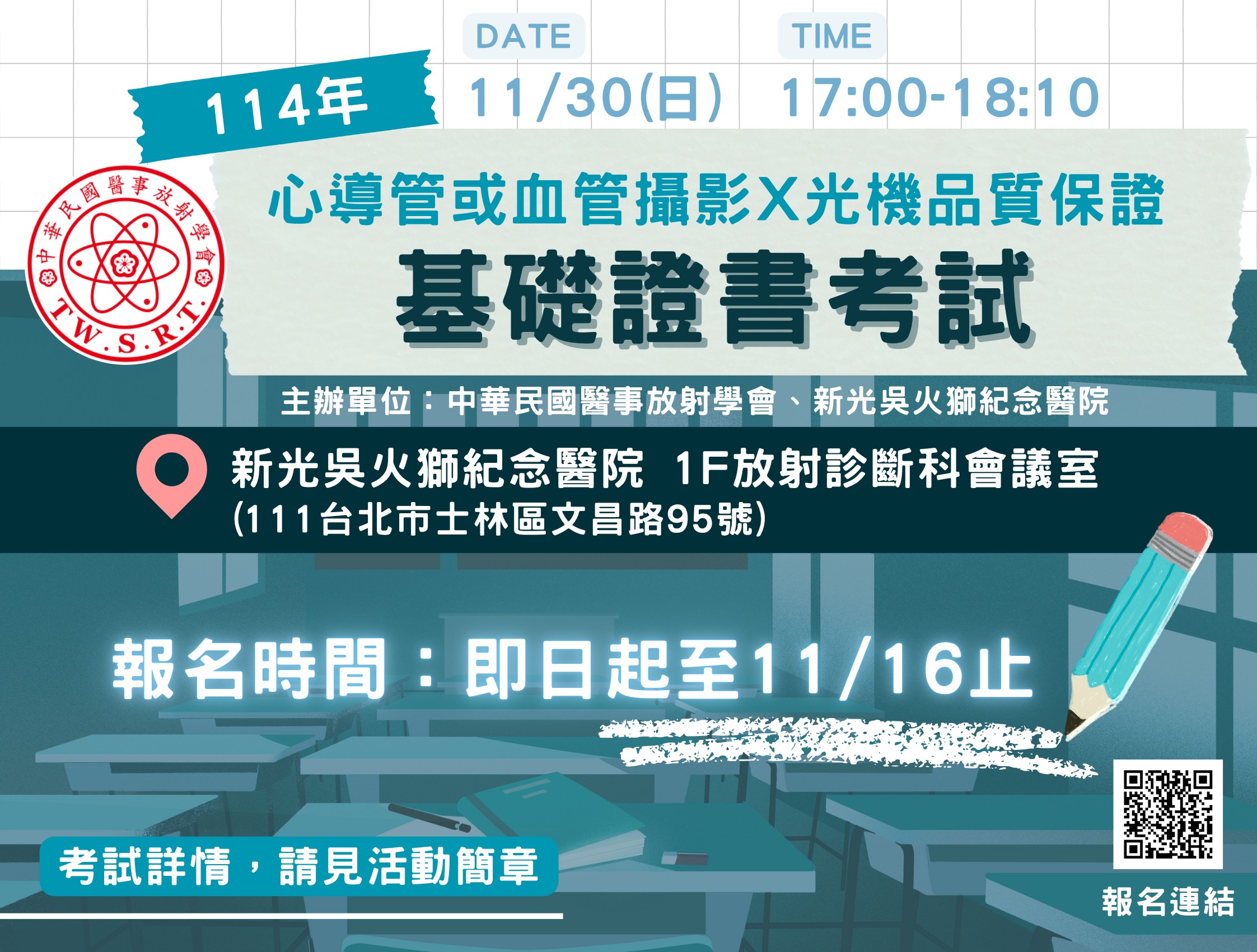 心導管或血管攝影X光機品質保證基礎證書考試簡章