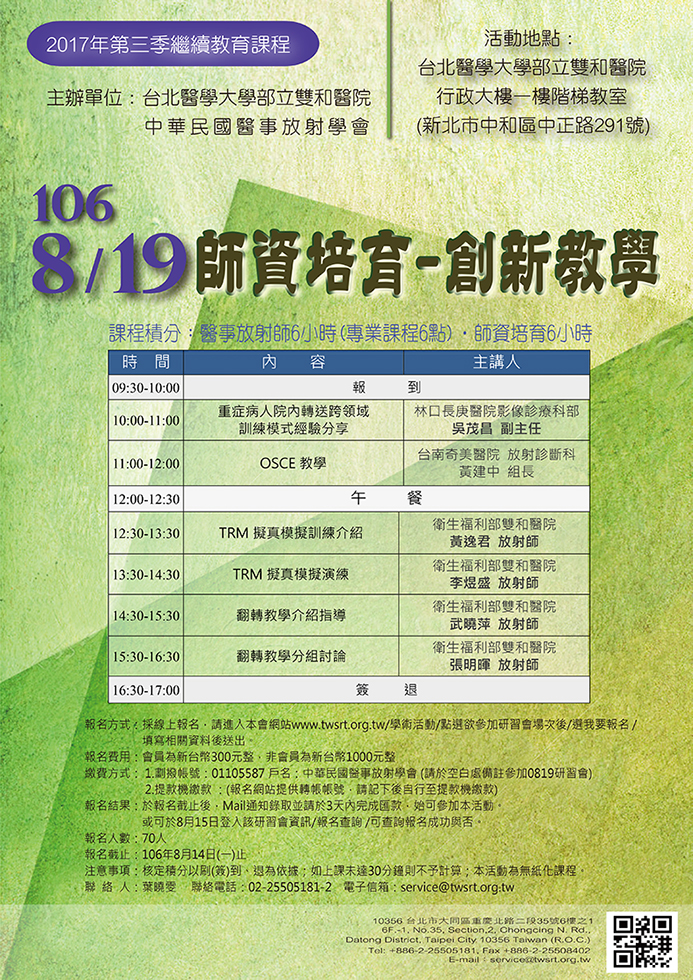 活動地點:台北醫學大學部立雙和醫院行政大樓一樓階梯教室 (新北市中和區中正路291號)