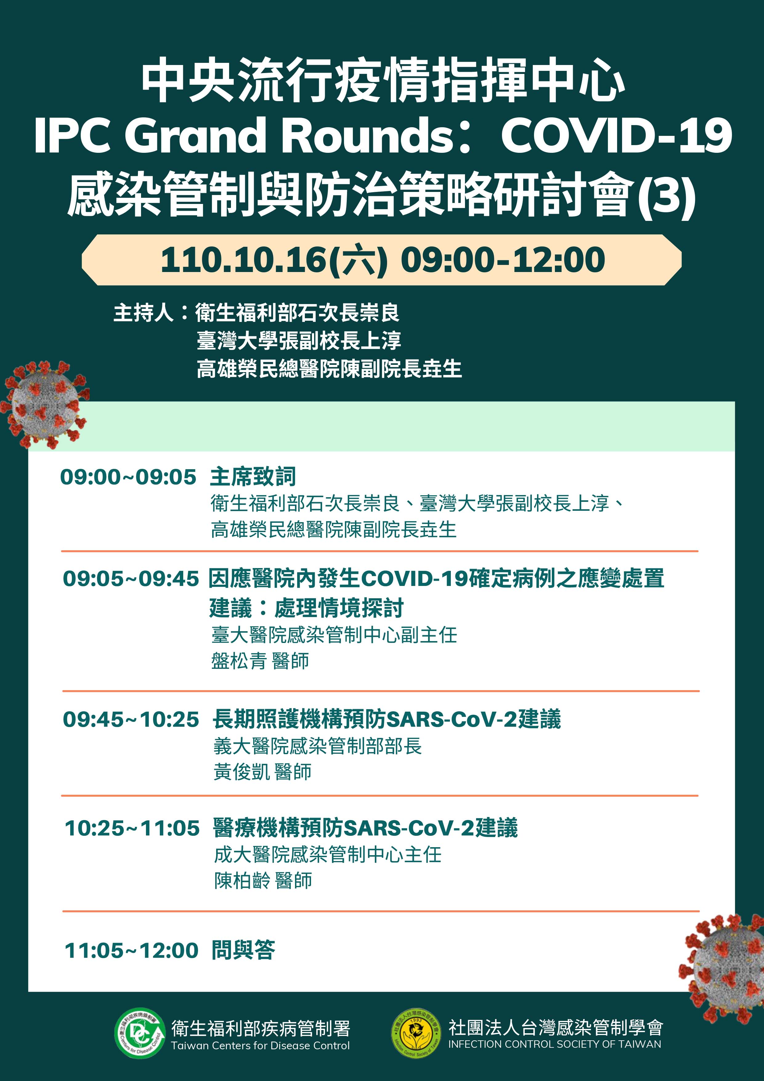 課程名稱:IPC Grand Rounds:COVID-19 感染管制與防治策略研討會(3)