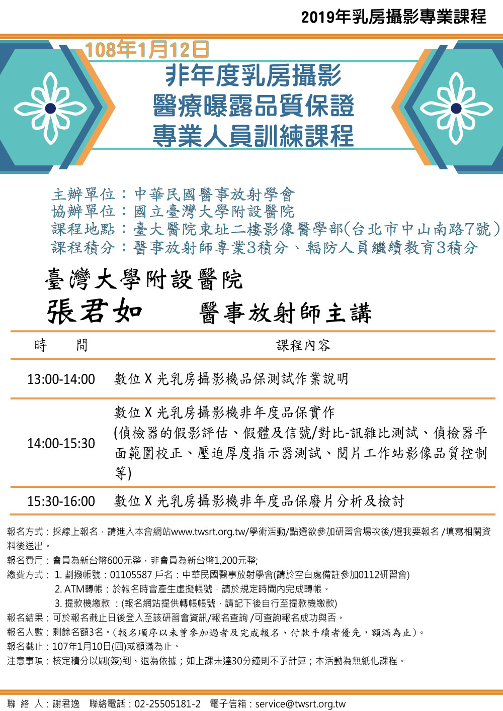 報名截止:至民國108年1月10日(星期四)或額滿為止。