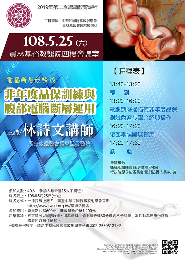 課程主題:非年度品保訓練與腹部電腦斷層運用研習會