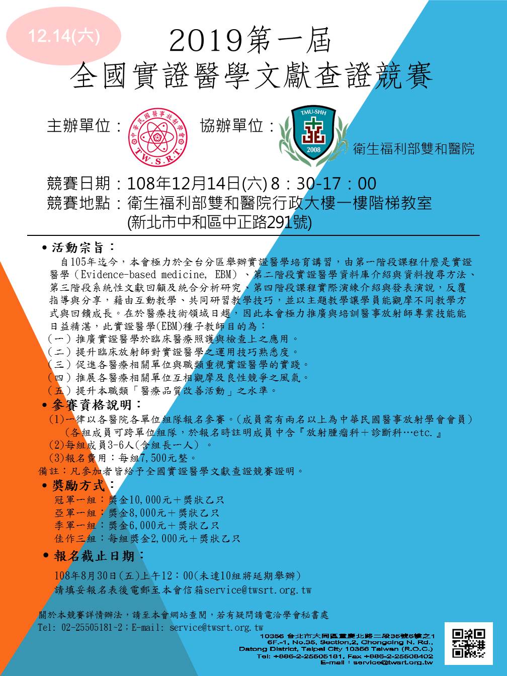 競賽地點:衛生福利部雙和醫院行政大樓一樓階梯教室(新北市中和區中正路291號)