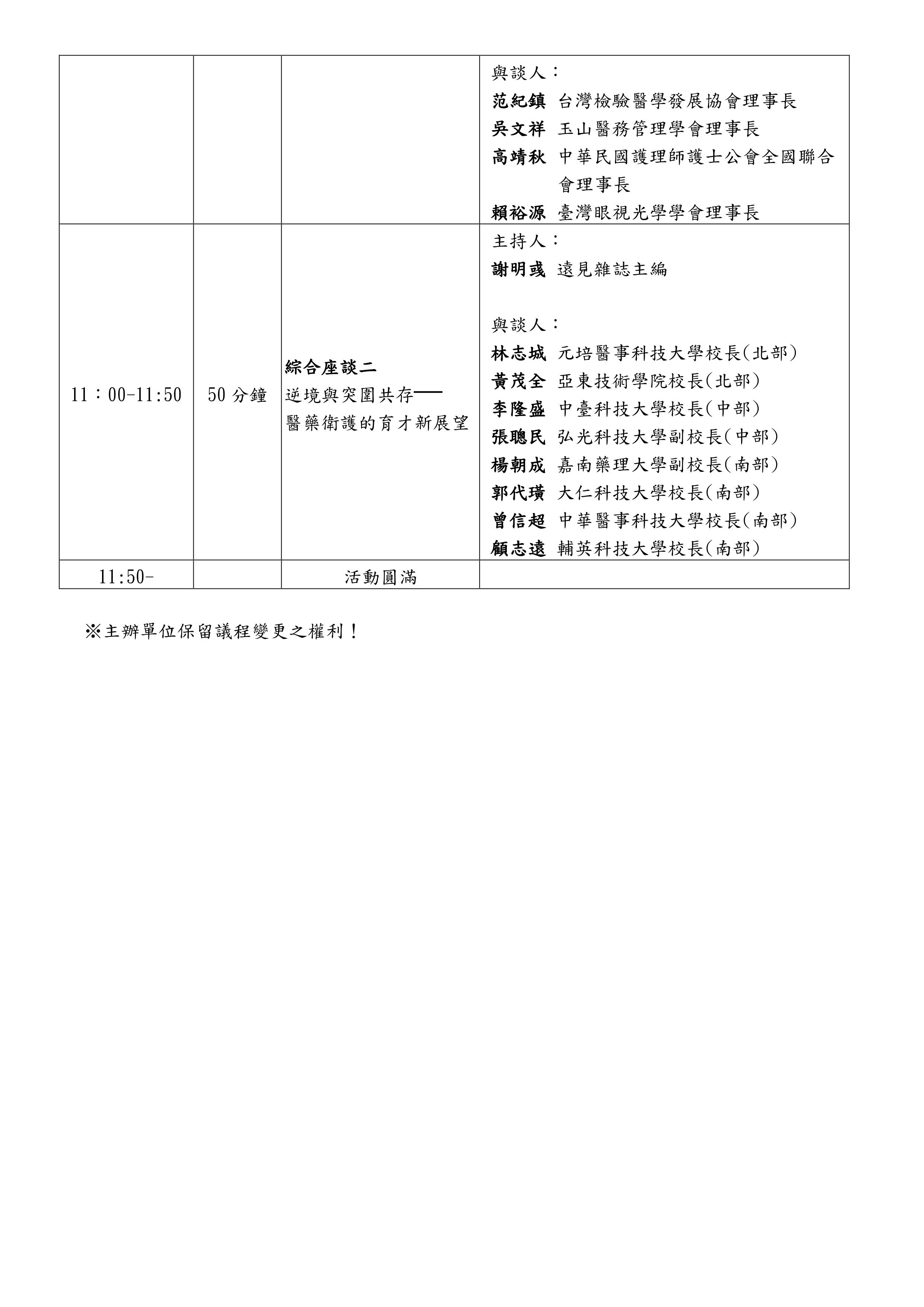 活動名稱:疫後公衛新亮點-醫衛創契機 護才育未來