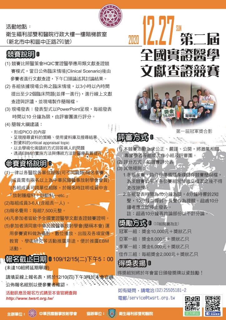 原定本周12/27(日)於雙和醫院舉辦「第二屆全國實證醫學文獻查證競賽」,