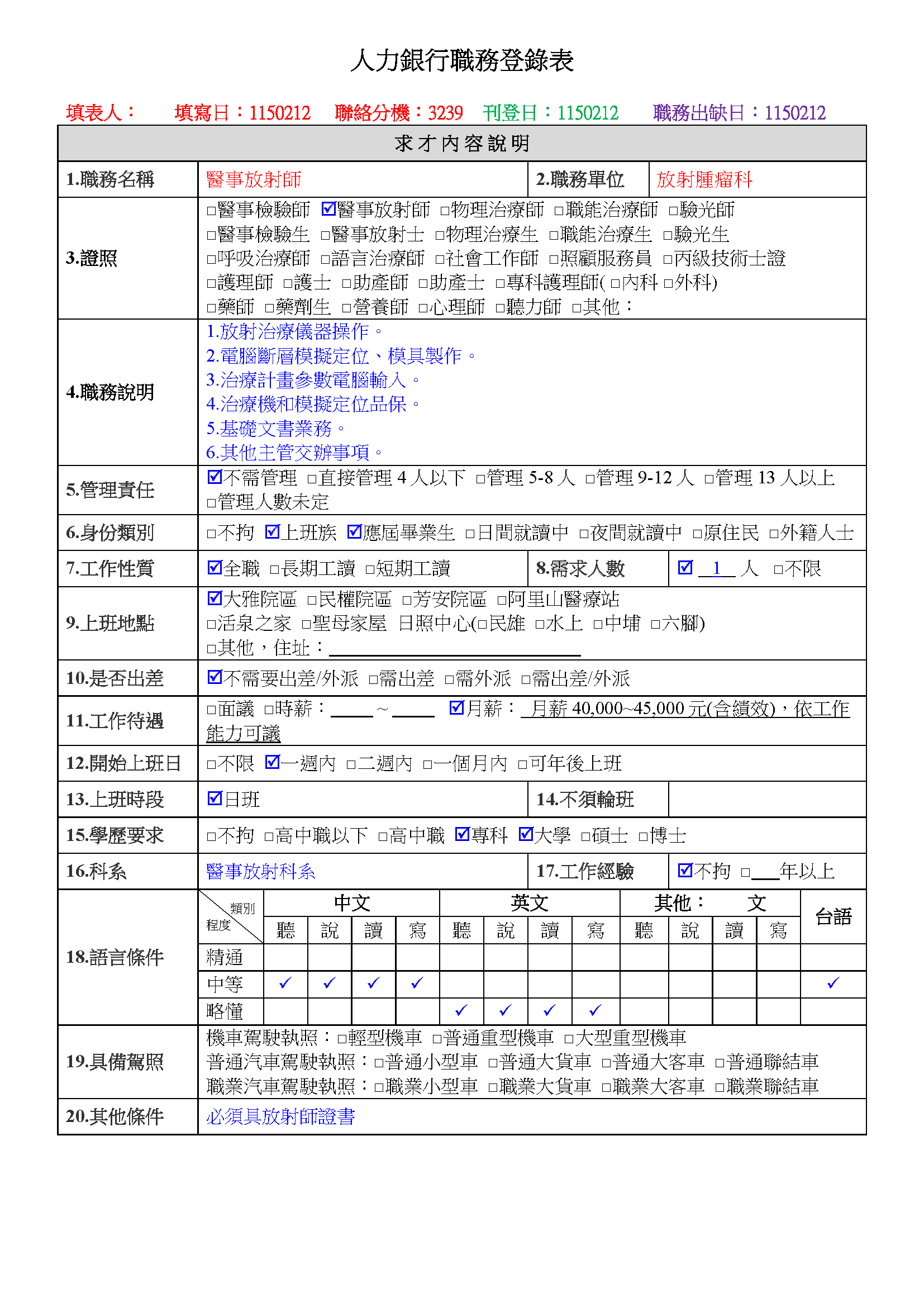 嘉義聖馬爾定醫院 放射腫瘤科-誠徵醫事放射師